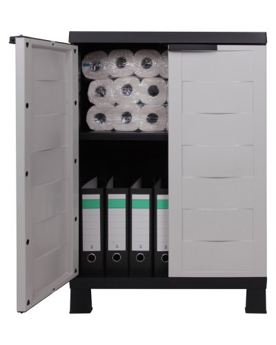 Dieser Universalschrank Beistellschrank Kunststoffschrank Small Prestige hat zwei Türen, welche sich bis 180° öffnen lassen. Seine grau designten Fronten mit den markanten anthrazitfarbenen, ergonomisch geformten Griffen und Korpus, sind aktuell gestaltet. Die gute Verarbeitungsqualität mit einem bei gleichmäßiger Verteilung bis zu 15 kg belastbaren Boden hat separate Bodenträger für einen passgenauen Sitz. Somit ist ein Verrutschen oder Abkippen des Bodens unmöglich und bietet erhöhte Sicherheit des gelagerten Gutes. Der zweitürige Universalschrank Kunststoffschrank Small Prestige ist ein leichtes Modell und für Vermischtes leichte Sachen im Haushalt sinnvoll. Durch das Befüllen des Universalschrank Beistellschrank Kunststoffschrank Small Prestige erhält dieser Plan B Stabilität. Ungeachtet alledem hat der Universalschrank Beistellschrank Kunststoffschrank Small Prestige vier Füße für ausreichend Bodenfreiheit. Der Universalschrank Beistellschrank Kunststoffschrank Small Prestige besteht leer hochwertigem Kunststoff und der Einlegeboden ist in seiner Höhe verstellbar. Die Maße des Kunststoffschrank Small Prestige sind (B) 67 x (T) 37 x (H) 93 cm, die Innenmaße 61 (B) x 33 cm (T) x 83 cm (H). Das Gewicht beträgt ca. 6,5 kg. Die Füße sind 8 cm hoch. Die Rückwand besteht leer extrudiertem Polypropylen. Der Universalschrank Beistellschrank Kunststoffschrank Small Prestige lässt sich ohne Werkzeug in ca. 10 bis 15 Minuten von einem ungeübten Heimwerker zusammenbauen. Beim Zusammenbau sollte man einfach nach der denkrichtig und simpel aufgebauten Anleitung vorgehen. Diese liegt im Universalschrank Beistellschrank Kunststoffschrank Small Prestige bei. Die Teile sind so gearbeitet, dass ein falsches Zusammenbauen eigentlich nicht etwaig ist. Die Reinigung ist einfach mit einem Neutralreiniger oder Alkoholreiniger durchzuführen. Das Versandgewicht sowie jeglicher Maßangaben sind Circa Angaben.