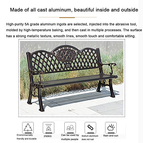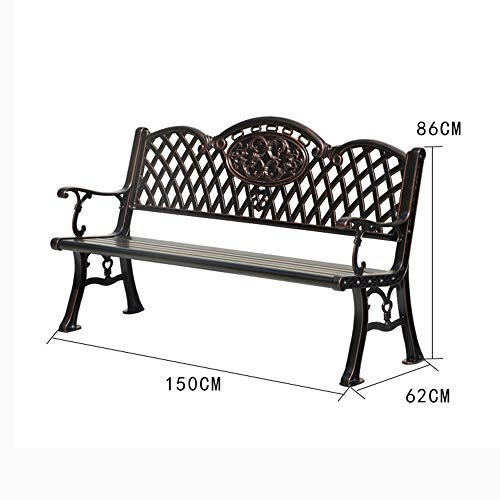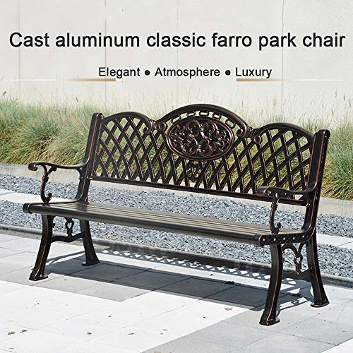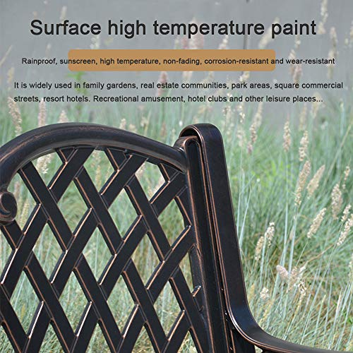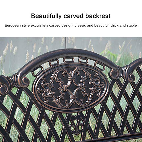 3. Starke Tragfähigkeit: Dieser Metallsitz im Freien besteht aus Gusseisen, massivem Rahmen, verdickten Beinen, hochwertigem Hardware-Zubehör, sicher und langlebig, kann am Beindesign befestigt werden, kann 500 kg stützen, 3 Personen können problemlos damit verhüten Verwenden Sie gleichzeitig eine längere Lebensdauer