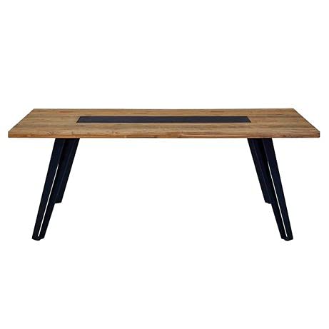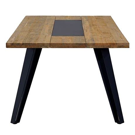 – Material: Tischgestell jeglicher hochwertigem Stahl und Tischplatte jeglicher recyceltem Teak, Inlay jeglicher Granit