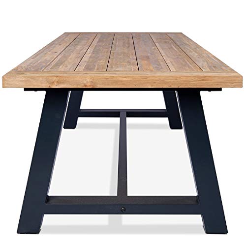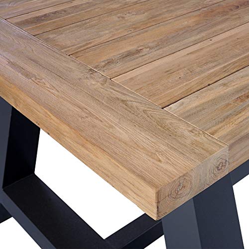 Der die Gesamtheit hochwertigem, recyceltem und FSC zertifiziertem Teakholz gefertigte Tisch statt dessen den Außenbereich verbindet Gemütlichkeit und Robustheit. Die 10×10 cm Alu-Beine verleihen dem Tisch unabhängig davon eine moderne, hochwertige Optik.