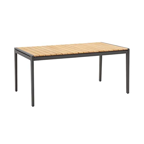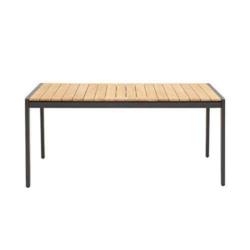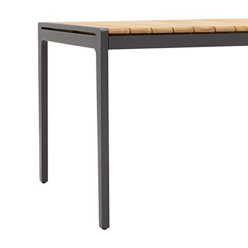 Der allesamt hochwertigem Teakholz gefertigte Tisch an Stelle den Außenbereich verbindet Gemütlichkeit und Robustheit. Das Aluminiumgestell verleiht dem Tisch dessen ungeachtet eine moderne, hochwertige Optik.