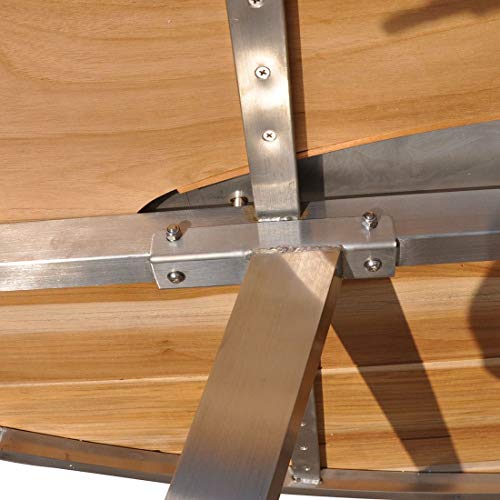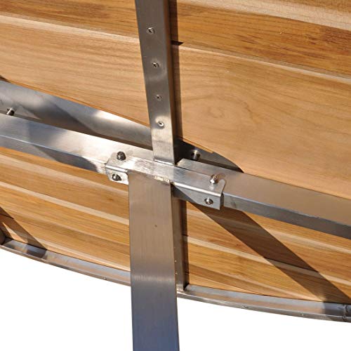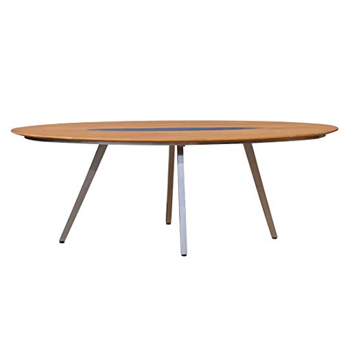 – Material: Tischgestell ganz hochwertigem Edelstahl und Tischplatte ganz recyceltem Teak mit Edelstahleinlage