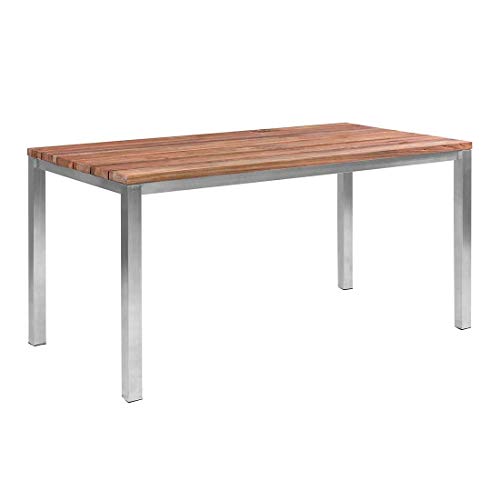 – Material: Tischgestell jeder hochwertigem Edelstahl und Tischplatte jeder recyceltem Teak (15 cm Lamellen)