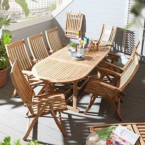 Der ganz hochwertigem, FSC zertifiziertem Teakholz gefertigte Ausziehtisch zugunsten den Außenbereich verbindet Gemütlichkeit und Robustheit.