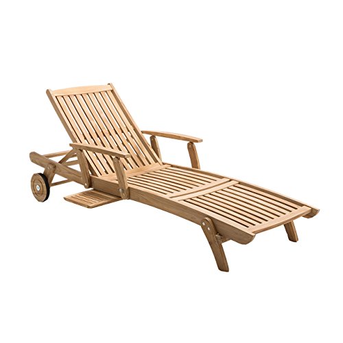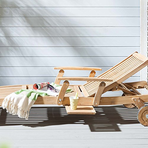 Hochwertige Gartenliege alle Teakholz mit verstellbarem Kopfteil und ausziehbarer Ablagerung