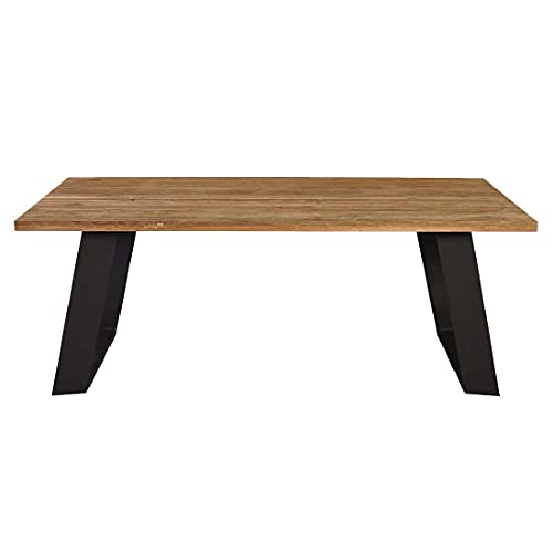 – Farbgebung: Tischplatte: Teak, Gestell in schwarz br>- Abmessungen: Breite (ca.): 200 cm | Höhe (ca.): 76 cm | Schlund (ca.): 100 cm | Unterschubhöhe (ca.): 72,5 cm | Tischplattenstärke (ca.): 4 cm | Gewicht (ca.): 46,5 kg