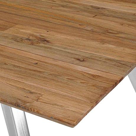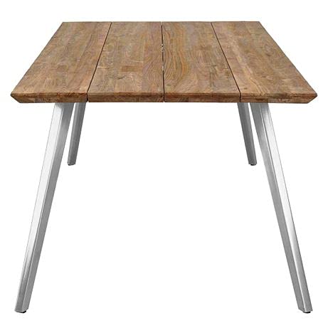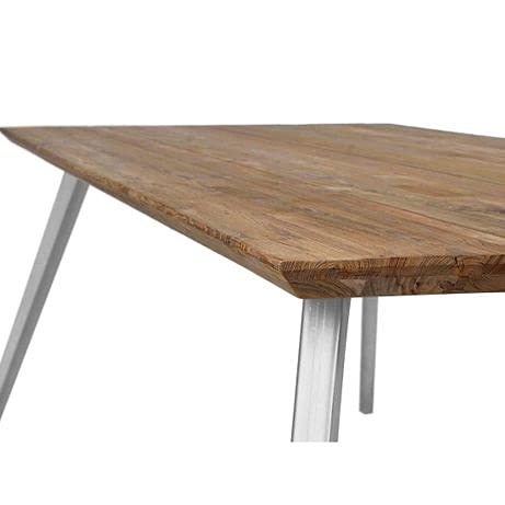 – Material: Tischgestell aufgebraucht hochwertigem Edelstahl und Tischplatte aufgebraucht recyceltem Teak