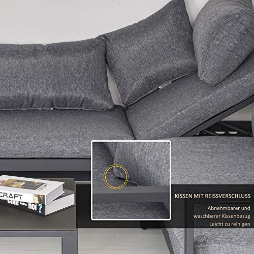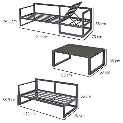 Outsunny 3-TLG. Gartengarnitur Gartenmöbel-Set 4-stufig verstellbar Gartenliege Gartenset Sitzgruppe mit Beistelltisch Sofa mit Kissen Outdoor Aluminium Grau