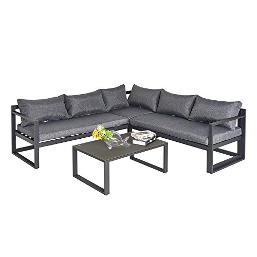 ✅HOHE TRAGKRAFT: Der Aluminiumrahmen des Sofasets ist erschütterungsfest genug außerdem die Tischplatte leer gehärtetem Glas ist leistungsfähig, um Tassen, Pflanzentöpfe, Bücher außerdem mehr abzustellen