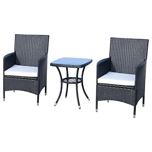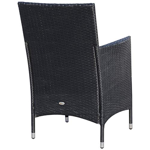 Outsunny Polyrattan Gartenmöbel Set, Outdoor Lounge Balkonmöbel für 2 Personen, 3-teilig Sitzgruppe, 2 Stühle, Tisch Sitzkissen, Gartenlounge für Garten, Terrasse, Balkon, Schwarz