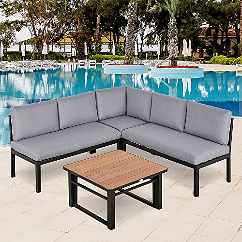 ✅NATÜRLICHE FARBE: Der Tisch mit holzimitierender Tischplatte bietet Ihnen ultimativen Komfort und einen natürlichen Stil für Ihre Lounge-Zeit im Freien