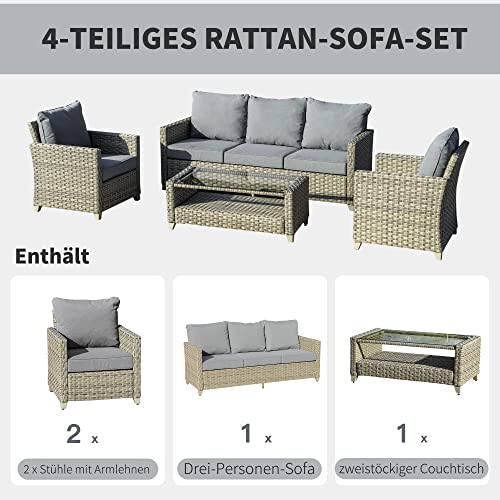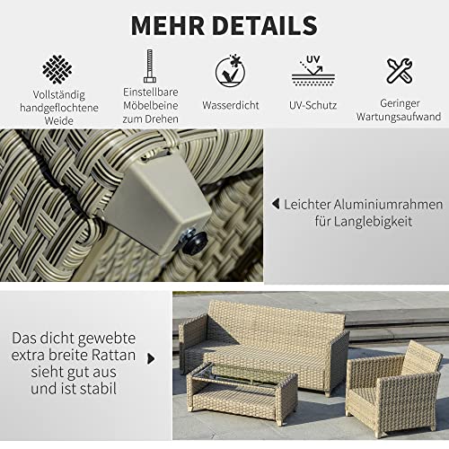Outsunny 4-TLG. Polyrattan Gartenmöbel Set Gartengarnitur Garten-Set Sitzgruppe Loungeset Loungemöbel mit Couchtisch…