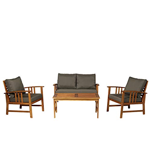 Outsunny 4er-Set Gartenmöbel Holz Sitzgruppe Garnitur Lounge mit Kissen Tisch Sessel Braun 3–4 Personen