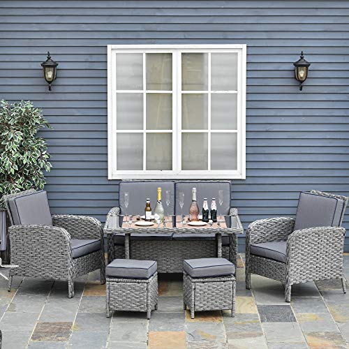 Dieses 6-teilige PE-Rattan-Sofa-Set für den Außenbereich wird von Outsunny hergestellt. Das Set besteht aus einem rostfreien Metallrahmen, der mit einer Beschichtung versehen ist. Das Rattan ist phantastisch genug, um allen Wetterbedingungen zu widerstehen. Die weichen, gepolsterten Rücken- und Sitzkissen Acht geben das ultimative Sitzgefühl im Freien. Genießen Sie die Zeit, die Sie im Garten verbringen.