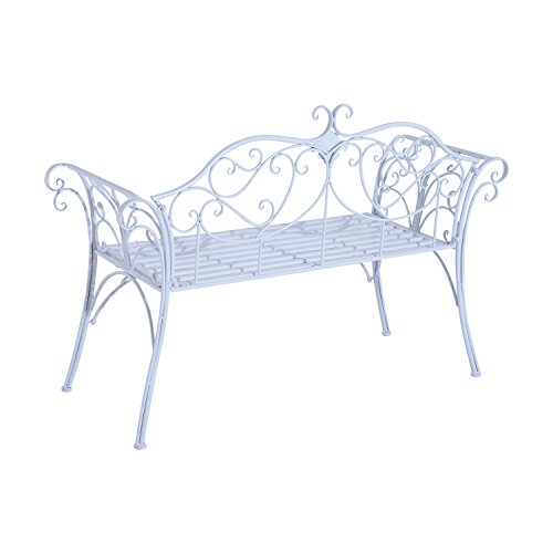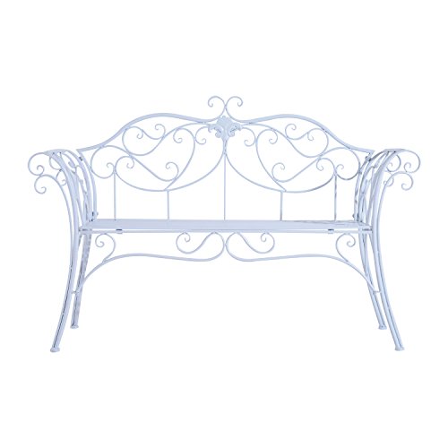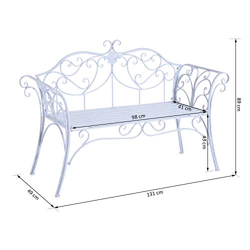 Outsunny Gartenbank 2-Sitzer Bank Sitzbank Parkbank Metall Gartenmöbel antik Weiß