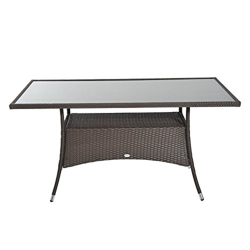Outsunny Gartentisch Glastisch Esstisch Gartenmöbel Tisch, Polyrattan+Sicherheitsglas, Braun, 150x85x74cm