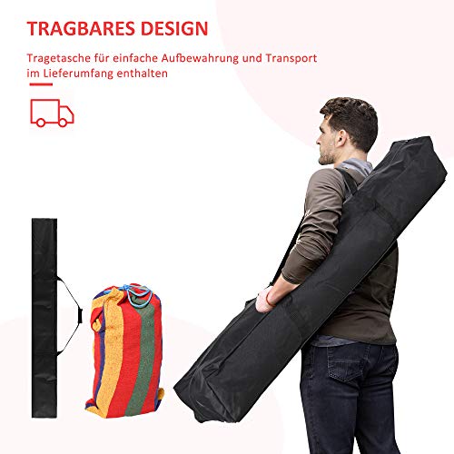 Unsere bequeme Hängematte ganz Baumwollstoff von Outsunny macht jeden Segment zu einem Wohlfühlbereich, Mit 6 verstellbaren Ebenen können Sie die Höhe der Hängematte besser an Ihre Bedürfnisse auf dieselbe Ebene stellen. Der Ständer ist ganz pulverbeschichtetem Stahl, der sicher genug und rostfrei ist. Lassen Sie einfach Ihre Freizeit von dieser Outsunny Hängematte begleiten.