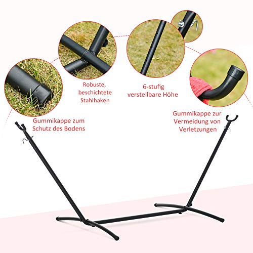 ✅EINSTELLBARE HÖHE: Sechs Löcher sind gleichmäßig auf dem vertikalen Ständer verteilt, so dass Sie die Hakenposition eichen können, um die Höhe der Hängematte nach Ihren Bedürfnissen anzupassen