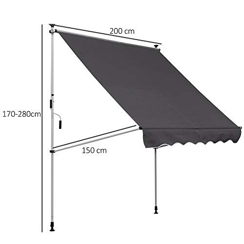Bringen Sie Schatten in Ihren Gartenbereich, wenn Sie ihn brauchen – mit der Outsunny Markise. Die Markise wird manuell mit einer Kurbel bedient und kann von 0 – 90 Abstufung im Winkel und von 1,7 bis 2,8 Meter in der Höhe verstellt werden. So können Sie ihn leicht an Ihren Standort adaptieren. Die wetterfeste Markise schützt Sie vor UV-Strahlen und Sonneneinstrahlung. Unsere Sonnensegel sind die perfekte Synchronisation, um Ihren Garten das ganze Jahr über zu genießen.