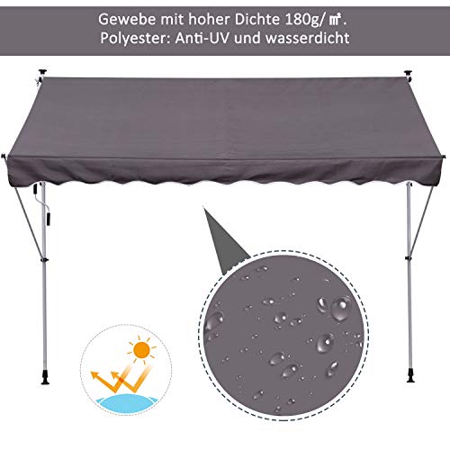 ✅Hochwertige Materialien: Diese Markise besteht alle 180g/㎡ Polyester, das Sie vor UV-Strahlen, Sonnenlicht und starkem Wind schützt, so dass Sie ungestört entspannen können.