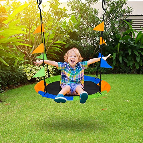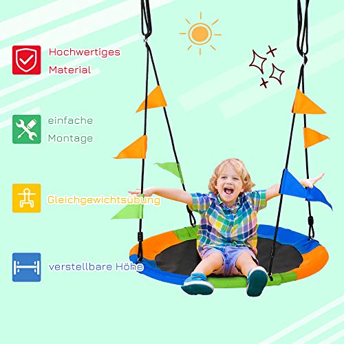 Outsunny Ø100 cm Nestschaukel Tellerschaukel Kinderschaukel Gartenschaukel bis 80 kg Outdoor belastbar für 3+ Jahre Metall Polyester Blau+Grün+Orange