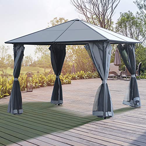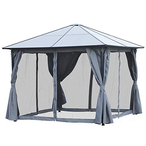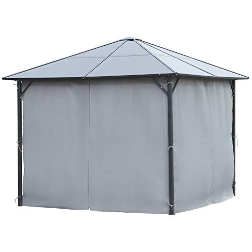 Outsunny Pavillon 3 x 3m Gartenpavillon Partyzelt mit Seitenteilen PC Dach Alu Dunkelgrau