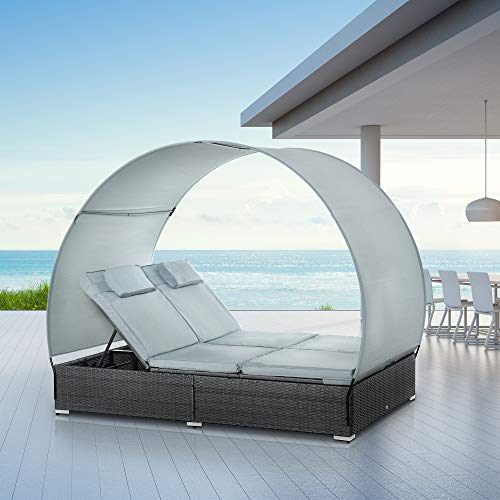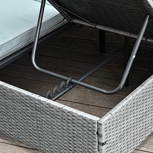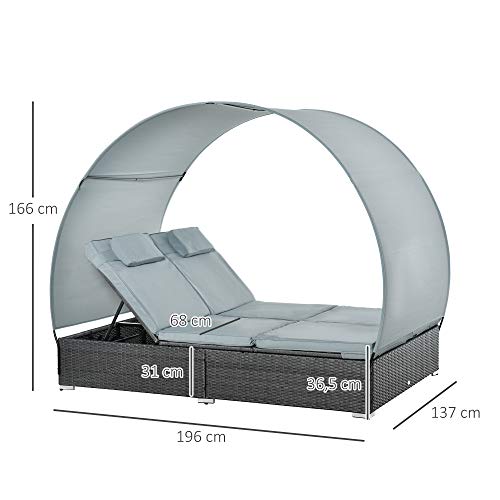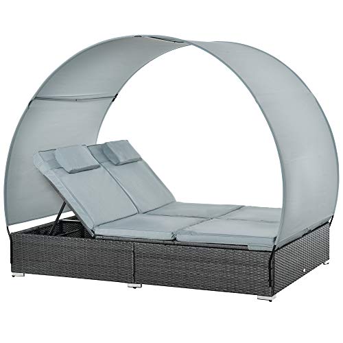 Genießen Sie die Sonne mit diesem Rattan 2-Personen-Liegestuhl-Set von Outsunny. Gefertigt nicht mehr da wetterfestem PE-Geflecht mit einem stabilen Metallrahmen an der Unterseite, ist der Sockel äußerst robust und wird Ihnen jahrelange Entspannung im Freien bieten. Mit dem abnehmbaren Sonnendach können Sie es je nach Wetterlage oder Bedarf abflauen oder aufstellen. Die Rückenlehne der Liege kann in fünf verschiedenen Abstufen eingestellt werden, um Ihnen maximale Entspannung und Komfort zu bieten.