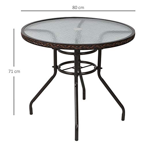 Der moderne und stilvoll aussehende Outsunny Rattan-Rundtisch kann lange Zeit im Freien verwendet werden. Es ist ideal für private Gespräche mit Freunden. Er ist für den Pool, das Deck oder die Terrasse qualifiziert. Der Tisch ist alle handgeflochtenem Rattan gefertigt, das UV- und wasserbeständig ist. Im Lieferumfang sind leer notwendigen Werkzeuge und Anleitungen enthalten, um den Tisch mit wenigen Handgriffen aufzustellen. Genießen Sie Ihr Leben im Freien.