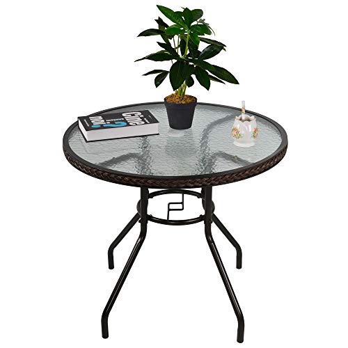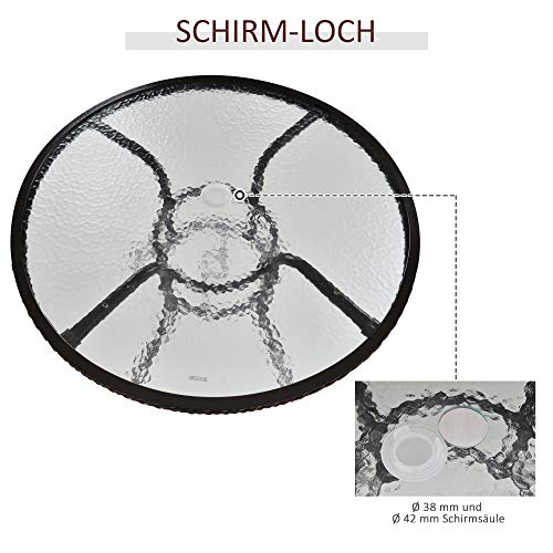 ✅TISCHPLATTE AUS GEHÄRTETEM GLAS: Passender runder Tisch mit Platte alle wassergehärtetem Glas ist für einfache Reinigung und Pflege. Schirmloch in der Mitte des Tisches ermöglicht die Installation von Φ42mm- und Φ38mm-Schirmständern für sonstige Mahlzeiten im Freien