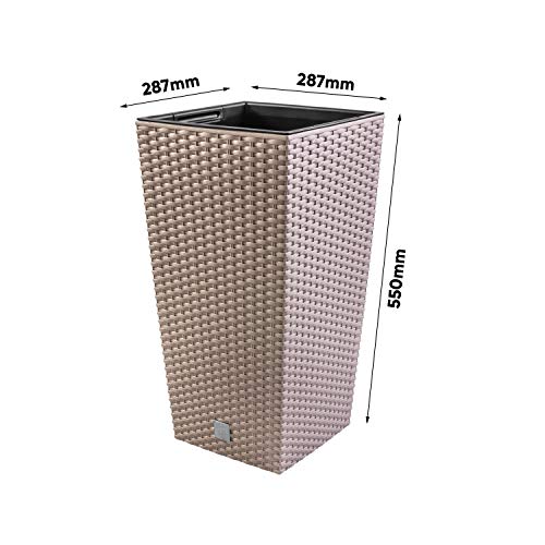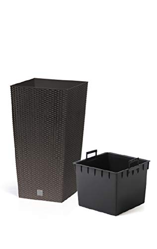 In moderner Rattan-Optik präsentiert dieser Blumenkübel Ihre Pflanzen.
