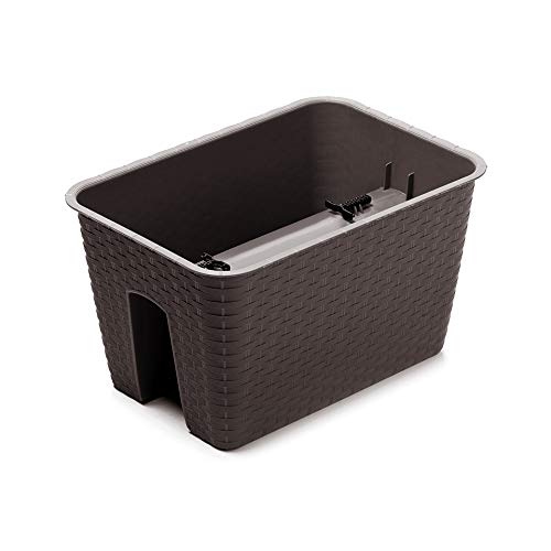 Der Balkonkasten passt an ein Geländer mit einer Breite bis zu 6cm und wird mit 2 einfach zu befestigenden Fixiereinrichtungen geliefert,