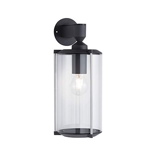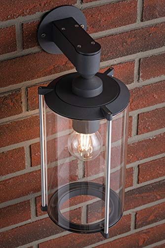 Die Außenwandleuchte mit kurzer Aufhängung, besticht durch ihr klassisches Design. Das anthrazitfarbene Gerüst und der klare Glasschirm Acht geben eine nostalgische Optik. Qua Leuchtmittel eignen sich an dieser Stelle ausgesprochen die Vollglas-Filamente im Retro-Look. Dank Spritzwasserschutz, kann die Lampe an jedweder Außenwand qualifiziert werden.
