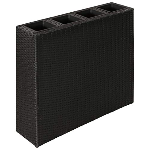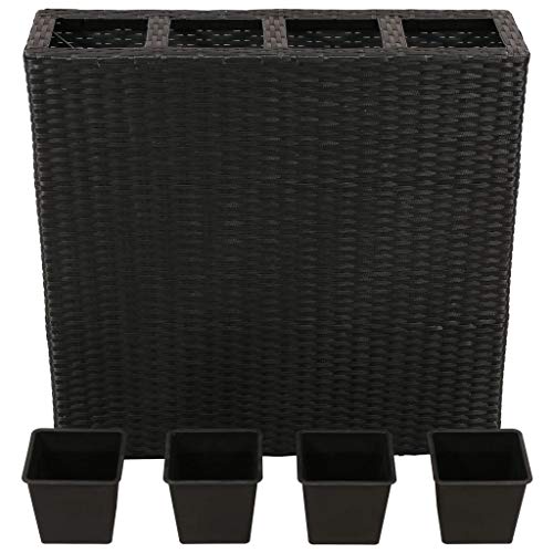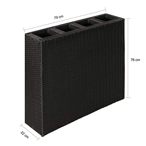 Farbe: Schwarz . Material: Rahmen Leer Poly Rattan & Kunststoff-Topf. PflanzgefäßMaße: 79 x 22 x 76 cm (L x B x H). TopfMaße: 16 x 16 x 14 cm (L x B x H). Witterungsbeständig. Ablieferung umfasst 1 Pflanzgefäß und 4 herausnehmbare Töpfe