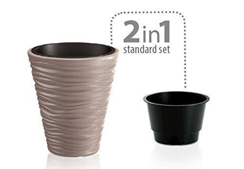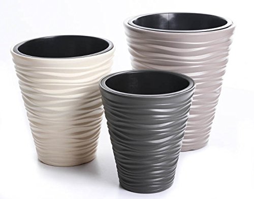 Der ganzjährige, frostbeständige Blumentopf Abfolge Sand mit Pflanzeinsatz inspiriert von handgefertigen traditionellen Keramikgefäßen mit einer rauhen Oberfläche und einem leichten wellenartigem Dekor versehen. Perfekt im Rahmen sowohl qua stilvolle Dekoration für den Innenbereich qua alias für Terassen, Verandas, Patios, Wintergärten und öffentliche Erholungsflächen. Der Topf zeichnet sich durch besondere Widerstandsfähigkeit gegenüber Sonneneinstrahlung,niedriger Temperaturen und mechanischen Beschädigungen die Gesamtheit.