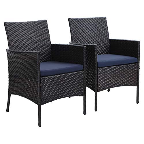 PHIVILLA 2er Set Rattan Stuhl mit Kissen aus Polyrattan und Stahlrahmen Gartenstuhl für Gartenbalkon Wasserdicht