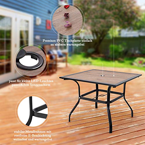 PHIVILLA Gartentisch Wetterfest Outdoor Garten Tisch Terrassentisch Balkontisch E-Beschichtung Metall 94×94×71cm Holzähnlicher Quadratische Braun