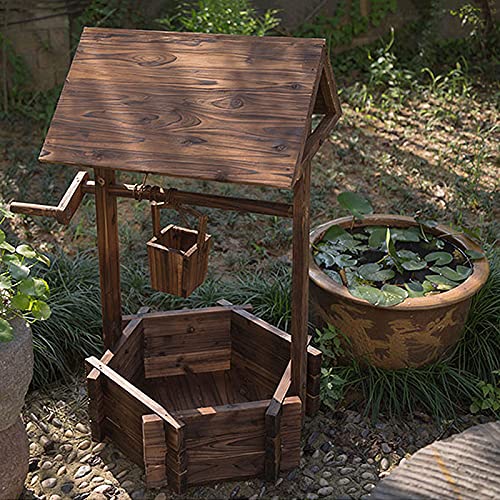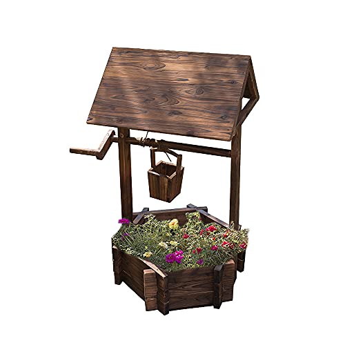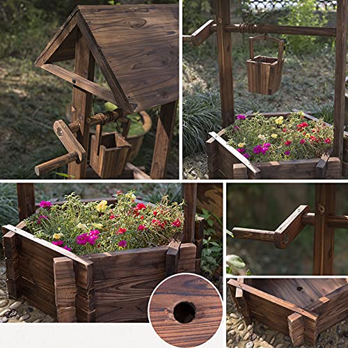 Spezielles Well- und Pavillondesign sieht rustikal aus, zwar stilvoll und macht den ganzen Wunsch-Pflanzer eine ausgezeichnete Dekoration zu Ihrem Rasen, Hinterhof, Garten und anderen Wohnraum im Freien. Eimer und gut können zum Anpflanzen von Blumen oder Pflanzen verwendet werden.