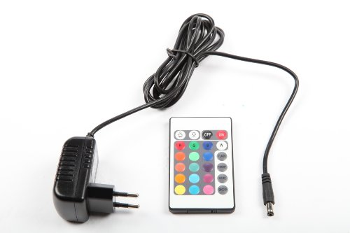 Fernbedienung: ON/OFF, Dauerlicht (16 Farben), 4 programmierbare Beleuchtungsszenarien (Flash, Strobe, Fade, Smooth), Helligkeitsregulierung