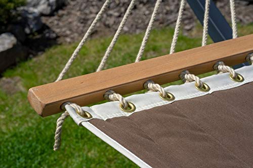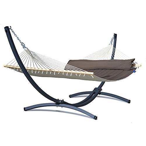 ✔️ Bequeme Hängematte nicht mehr da Baumwolle über Ständer. Mit Bezug auf einer überdurchschnittlichen Liegefläche sichert sie komfortable Erholung zugunsten zwei oder drei Personen.
