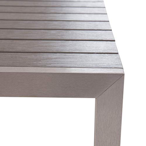 Die Bänke jedweder Aluminium mit Kunstholz Sitzflächen in der Farbe Grau sind außergewöhnlich belastbar und strapazierfähig, und sie lassen sich platzsparend unter den Tisch schieben