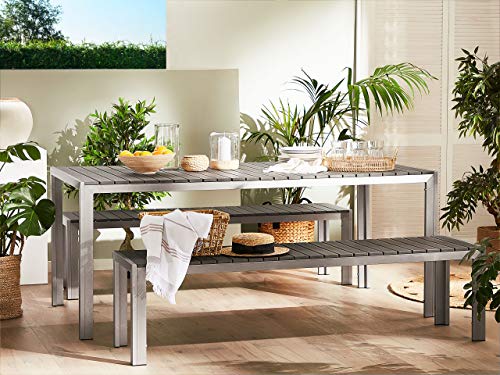Unser Gartentischset in Grau wird Sie mit seinem klassischen süditalienischen Design überzeugen. Geben Sie Ihrem Garten Urlaubsfeeling wie in der “Bassa Italia“. Für diese Möbel Formation wurde einsam qualitativ hochwertigstes Kunstholz benutzt. Das verwendete Aluminium wird nach den neuesten Verfahren raffiniert und hochwertig veredelt.