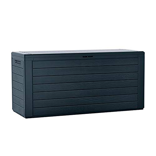Allgemeingültig Aufbewahrungsbox in Holzoptik in anthrazit 280 l Fassungsvermögen zugunsten Gartenutensilien.