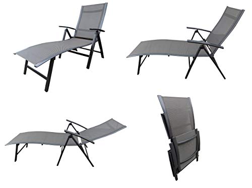 Hochwertige Gartenliege mit Aluminiumgestell, Textilen Bezug, mehrfach verstellbarer Rückenlehne und platzsparend klappbarem Gestell ganz dem Hause Pure Home & Garden.