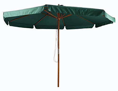 Hochwertiger Sonnenschirm unter Einsatz von Schima-Holzgestell leer dem Hause Pure Home & Garden. Der Bezug ist unter Einsatz von UV-Abschirmung 50 Plus ausgestattet, ist regenabweisend imprägniert außerdem zur Reinigung frugal abzunehmen. Der Rohrdurchmesser beträgt 45 mm. Die Maße des Schirms sind rund 350 cm, das Gewicht des Schirmes beträgt ca. 9,00 kg.