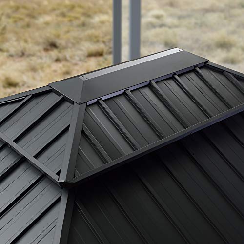 Möbel NICHT INBEGRIFFEN. Das Design der Wasserrinne sorgt dafür, dass Regenwasser aufgebraucht den Kanten des Rahmens und der Stangen fließt.