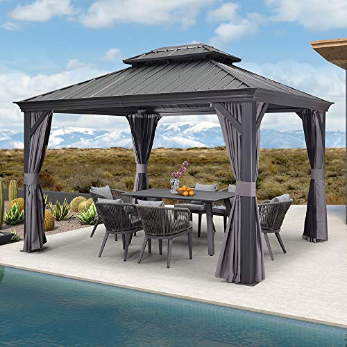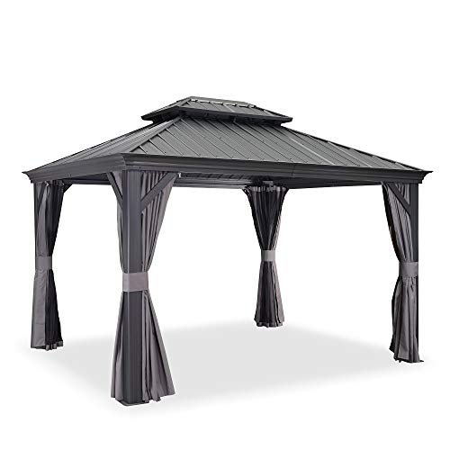 Hardtop-Pavillon im Freien ist die perfekte Addendum für Ihr Gartendekor. Er bietet einen großen Schatten und bietet einen effizienten Abschirmung vor hellem Licht, Sonnenstrahlen und starker Hitze. Dank des verzinkten Stahldaches hervorragend brauchbar, um den Wetterbedingungen standzuhalten Vorhänge, um Insekten fernzuhalten und die Unterhaltung mit Ihrer Familie und Freunden im Freien zu genießen. Dieser Pavillon wird Ihre Gäste mit Sicherheit nachhaltig beeindrucken, wenn sie Ihren gehobenen, schattigen Urlaub genießen. Er wird zum bevorzugten Ort zum Entspannen und Essen und genießen Sie Gespräche. Platzieren Sie sich derzeitig jahrelang auf Ihrer Terrasse! abnehmbares Verdeck von Sportwagen-Pavillon, Pavillon, Terrasse abnehmbares Verdeck von Sportwagen-Pavillon, Garten-abnehmbares Verdeck von Sportwagen-Pavillon, abnehmbares Verdeck von Sportwagen-Pavillon im Freien mit Netz Schneelastkapazität: 2500 Pfund Windstärke: 40 Meilen pro Stunde Um Ihre Terrasse besser zu schützen, räumen Sie bitte regelmäßig den Schnee auf und ergreifen Sie Schutzmaßnahmen, wenn die Windgeschwindigkeit den Nennwert erreicht. Bitte überprüfen Sie die Anweisungen und Anhänge vor der Installation behutsam. Befolgen Sie diese Initiative, um sie zu installieren. Sie benötigen drei Personen, die Sie bei der Installation tragen. Für die Installation sind Leitern und Handschuhe erforderlich.