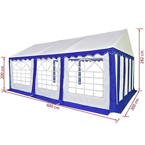 Höhe der Dachrinnenlinie: 2 m Wasserabweisende Planenmontage ist überaus einfach Lieferumfang: 1 Abdeckplane mit Klettverschluss, 1 Rohrrahmen, 2 Türen (verschiedene Größen) 6 Seitenteile mit 6 Fenstern (je 2 x 2 m) Spannseile, Schrauben und Heringe zur Befestigung der Plane und des Rahmens. Material: PVC: 100 %