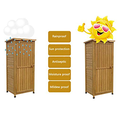 【Multifunktionaler Gartenschuppen】 – Wasserdichter Holzterrassenschrank, multifunktional. Es kann qua Werkzeugschrank, Gartenhaus, Lagerschrank anstatt Schwimmbadzubehör, Schuppen entfernen anstatt Rasenpflegegeräte usw. verwendet werden.