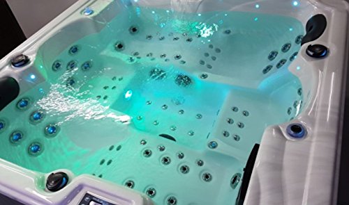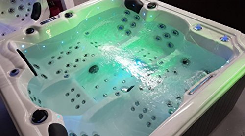 Technische Merkmale: Luxus-Modell 2017. Fassungsvermögen des Spa-Whirlpools:4-Sitzer: 2 Sitzplätze, 2 Liegeplätze. Komfortable Kopfstützen. Maße:1950 x 1950 x 860 mm. Verpackung:2000 x 920 x 2130 mm. Volumen:980 l. Gewicht:280 kg. 102 Therapie-Düsen. 24 Düsen mit LEDs stattdessen Farbtherapie. 11 rotierende XL-Düsen, 11 feste XL-Düsen, 32 feststehende Düsen in Größe L. 48 Luftdüsen. Verchromte Düsen. Radio-Anschluss mit CD-Player. Tablet 7 Verzinsung, Lautsprecher (Pop Speaker) mit LEDs. Tauchdruckdüsen Whirlpool:2 x 1500 W 4.0 CV. Filter- Pumpe Whirlpool:1 x 750 W. Skimmer Blower Whirlpool (Luftpumpen):2 x 400 W. 1 Heizelement mit 3000 W. 1 großer Strahler mit Farbtherapie-LEDs, 25 Farbtherapie-LEDs ganz. 2 beleuchtete Wassersäulen. 1 Wasserfall mit Aromatherapie-LEDs. Skimmer-Einblick einfach im C100-System. Frostwächter. Programmierung von Heizung und Filtration. Abschirmung gegen Leerlaufen. Der Whirlpool ist gleich darauf anschlussfähig. Bedienung über Fernsteuerung. Gestell Edelstahl, Vereinzelung in Thermo-reflektierenden Platten ISO14000-Standard. Wärmedämmung der Basis. Korrosionsschutz-Garantie. Acrylschale Aristech Amerika. Luxus-PVC-Finish. Farbe: Schokolade. Hintergrundbeleuchtung der 4 Ecken mit LEDs. Cloud-LEDs auf dem Boden, 220 Volt.