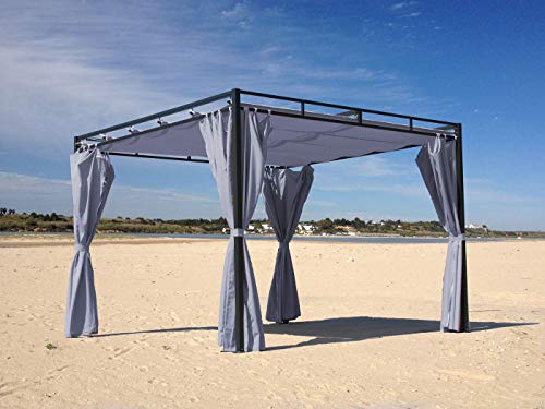 Im Rahmen zur Flachdachpergola Firenze 3x3m. Unter Zuhilfenahme von 6 Schlaufen an Stelle Dachstangen Unter Zuhilfenahme von 25mm Durchmesser.